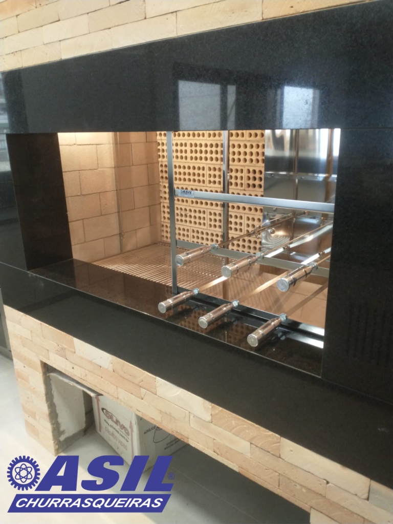 Modelo bipartida com 6 espetos rotativos e a grelha com regulagem de altura motorizada na lateral